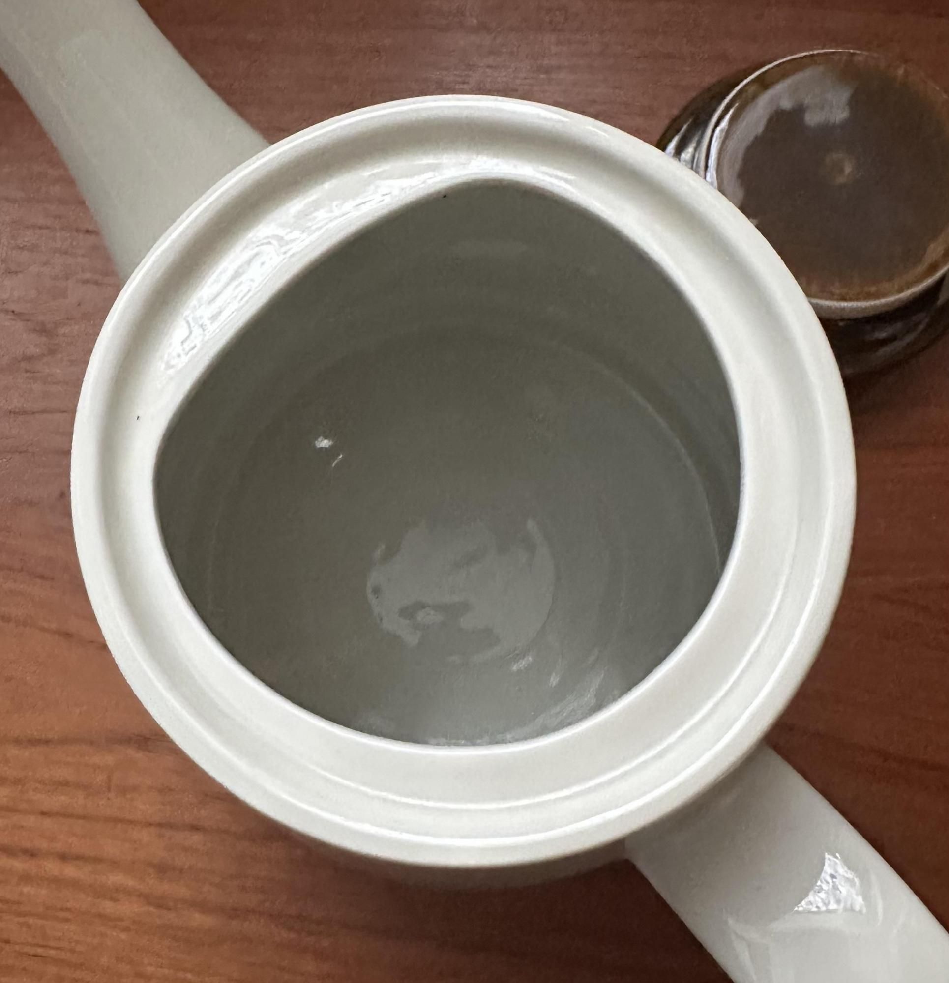 こちらのティーポットは、なかなか見かけない逸品です。本体にあるかわいいレリーフ模様と、丸い取手と全体のフォルムがなんともかわいいです。
